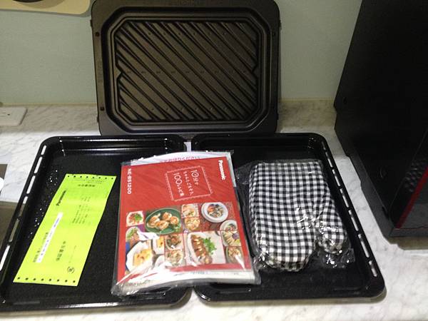 配件取出,共有3個烤盤,保固書(應該又用不到了).手套,說明書