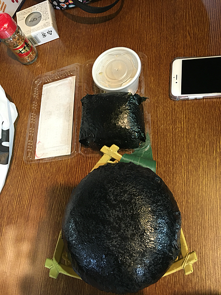 酒喝完了..就要吃個爆彈飯糰....因為Jeff n Connie只有兩個..當然買兩人份的飯糰.另一顆四人份就大上許多.